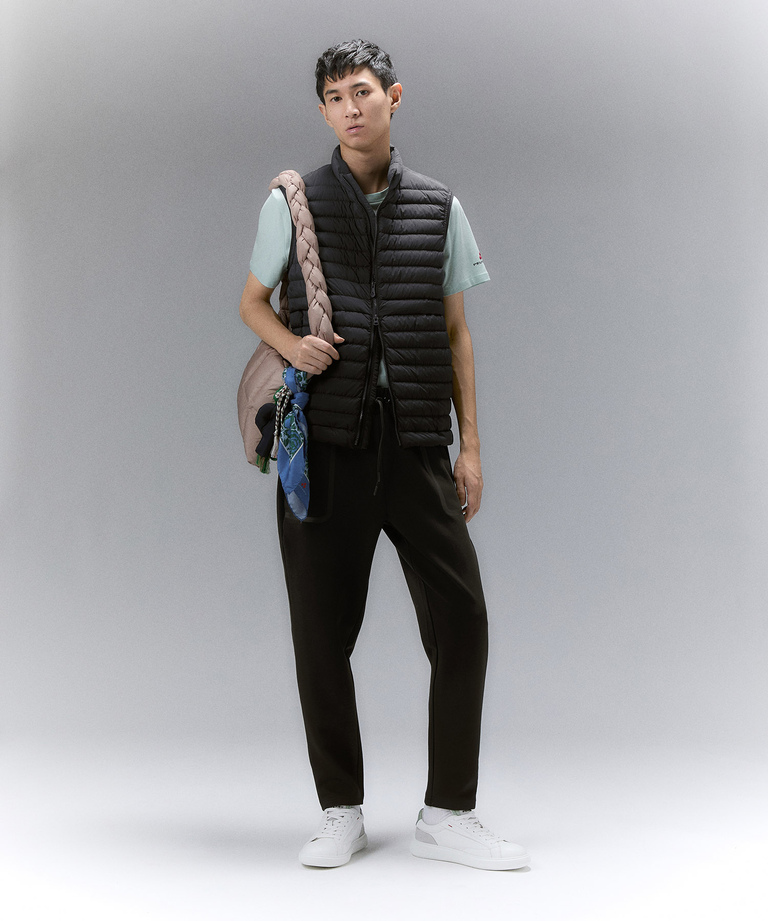 Our men’s padded vests and sleeveless down jackets are ideal for mid-season. Comfortable and versatile, to be worn over or under outerwear, they adapt to the climate and the rhythm of your day. Explore the line of lightweight or winter padded vests, ideal both for work and leisure and easy to pair with trousers and shoes from the collection.