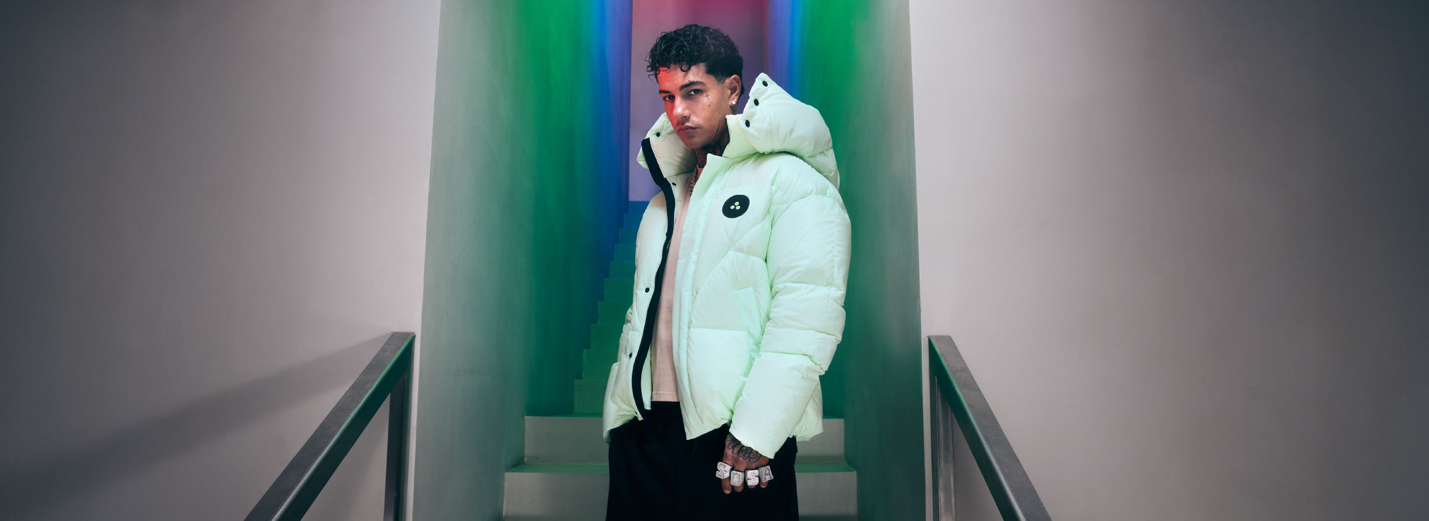 This exclusive genderless capsule was born from the encounter between Peuterey Plurals and Tony Effe – iconic artist in the new Italian music scene, with 37 platinum and 12 gold records, and over 4 billion streams. Streetwear and luxury blend in this authentic collection, reflecting the Roman artist’s instinctive and direct style: oversized hoodies, boxer style trousers, bold down jackets and performance balaclavas defined by clear volumes and iconic details, for this urban collection with a strong visual impact. Every piece is the result of a creative dialogue combining Tony’s personal aesthetic with the brand’s signature style. A collection designed for those who use fashion to express their own identity.